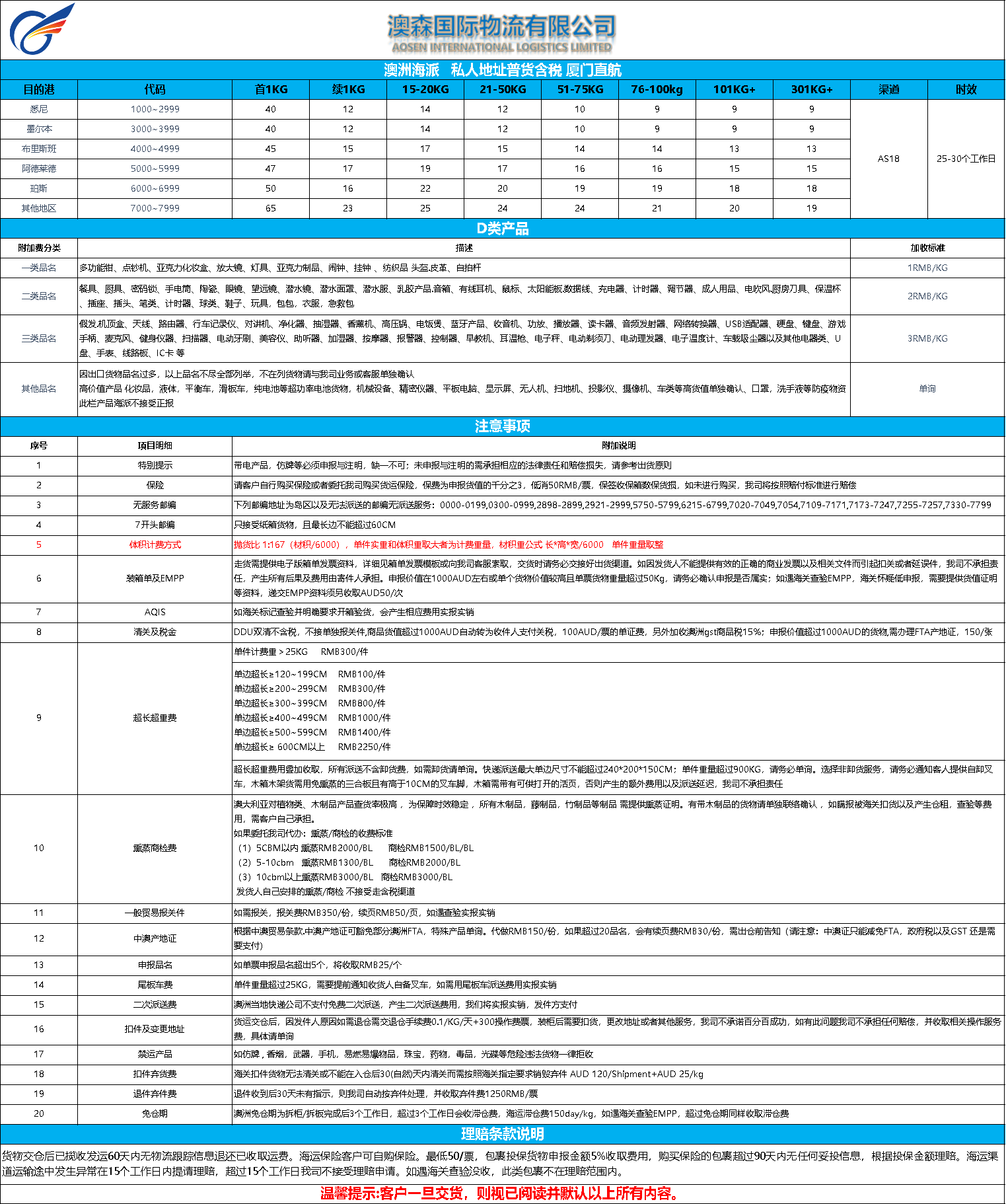 澳洲空派集运(澳邮)
