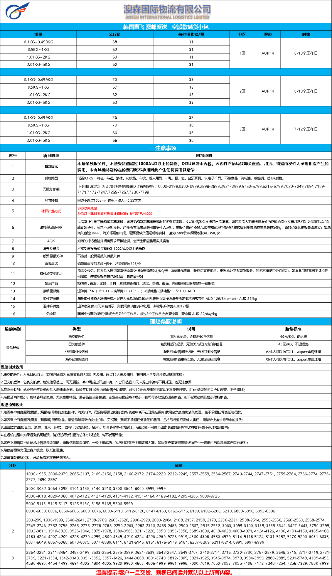 澳洲空派集运(澳邮)